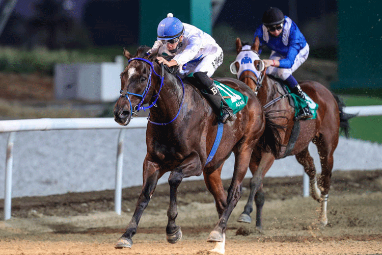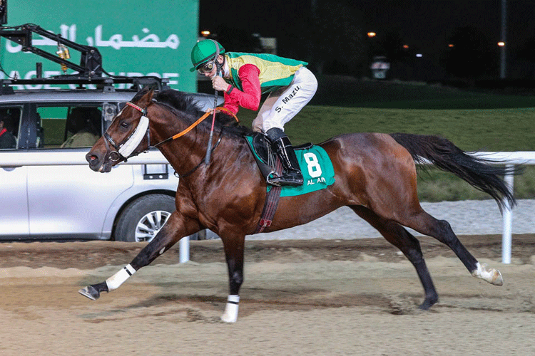 Szczepan Mazur, sporting the silks of the Omani Royal Cavalry for trainer Ibrahim Al Hadhrami, was content to track Marzaga for the opening 500m, but then grabbed the initiative before committing for home a long way out, the race in safekeeping entering the final 300m. Homebred, the 8-year-old entire was registering a fifth career victory, third on dirt and second over 1400m having also won over the trip on the Abu Dhabi turf in March 2017.